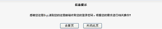 注册成功后,系统会随机发放一个6位数字密码至你的Email中,可根据需求进行下一步的操作,下图为注册信息提示页面