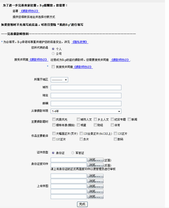 4、 我想卖图:完善卖家信息具备卖家基本功能,需经过管理员审核方可销售图片